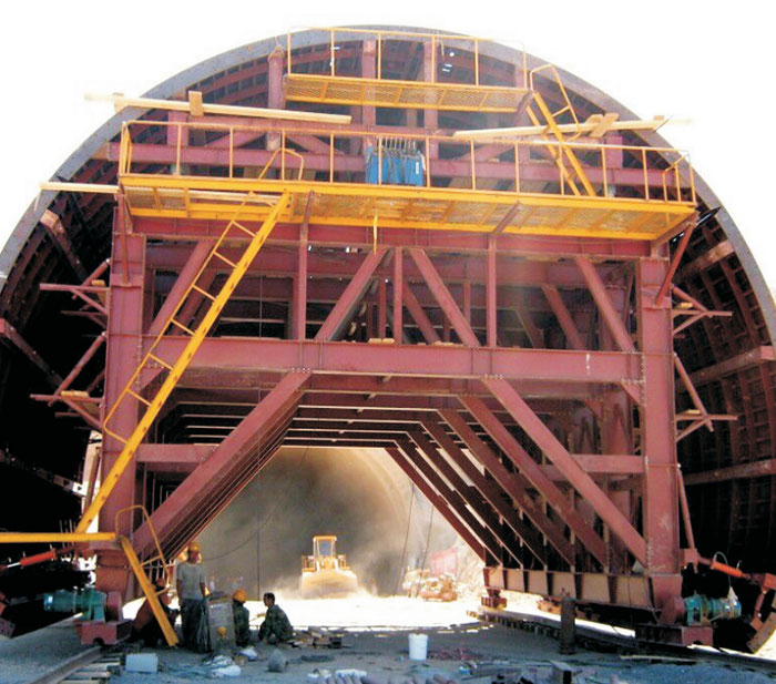 隧道模是一種組合式定型模板是在大模板施工的基礎(chǔ)上,將現(xiàn)澆墻體的模板和現(xiàn)澆樓板的模板結(jié)合為一體,做到一次支模,一次綁鋼筋,并同時將墻體和模板一次澆筑成形,因這種模板的外形像矩形隧道,故稱之為隧道模。